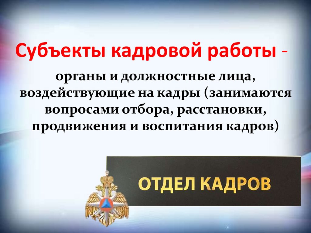 Субъекты кадровой работы органы и должностные лица,воздействующие на кадры (занимаются