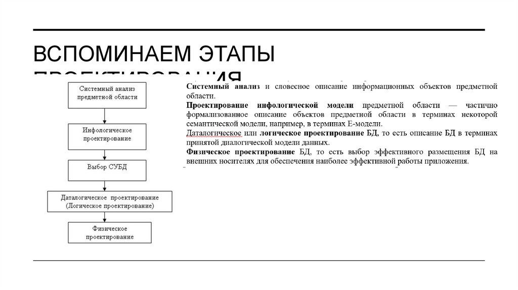 ВСПОМИНАЕМ ЭТАПЫПРОЕКТИРОВАНИЯ