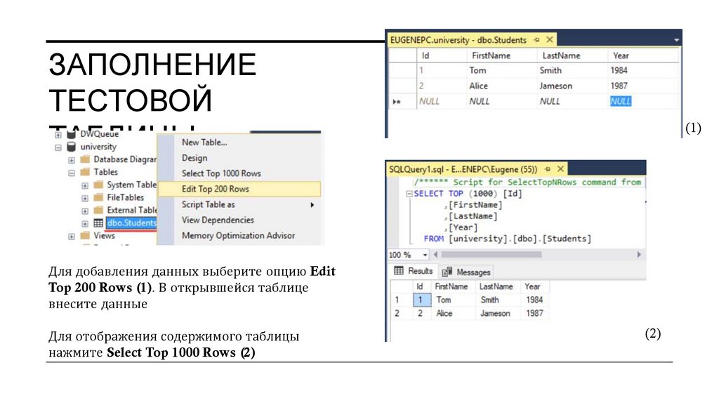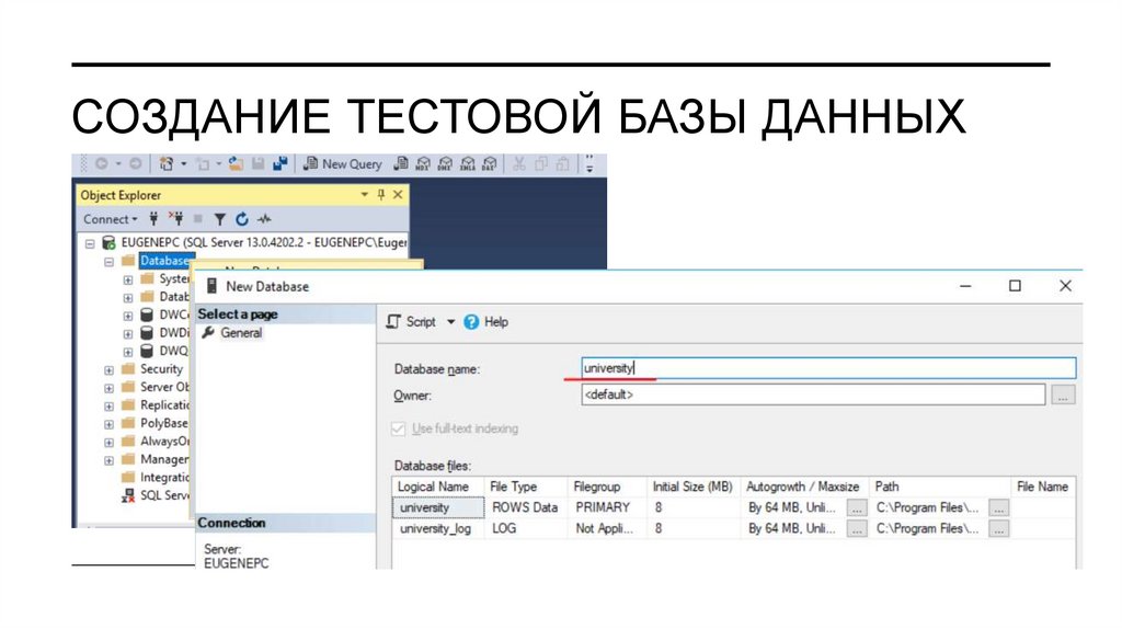 СОЗДАНИЕ ТЕСТОВОЙ БАЗЫ ДАННЫХ13.