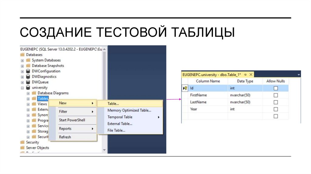 СОЗДАНИЕ ТЕСТОВОЙ ТАБЛИЦЫ14.