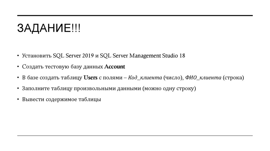 ЗАДАНИЕ!!!• Установить SQL Server 2019 и SQL Server Management Studio 18