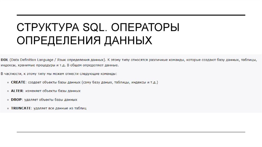 СТРУКТУРА SQL. ОПЕРАТОРЫОПРЕДЕЛЕНИЯ ДАННЫХ