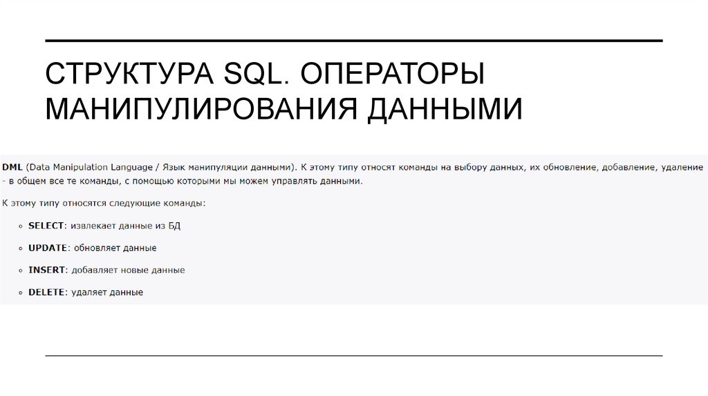 СТРУКТУРА SQL. ОПЕРАТОРЫМАНИПУЛИРОВАНИЯ ДАННЫМИ