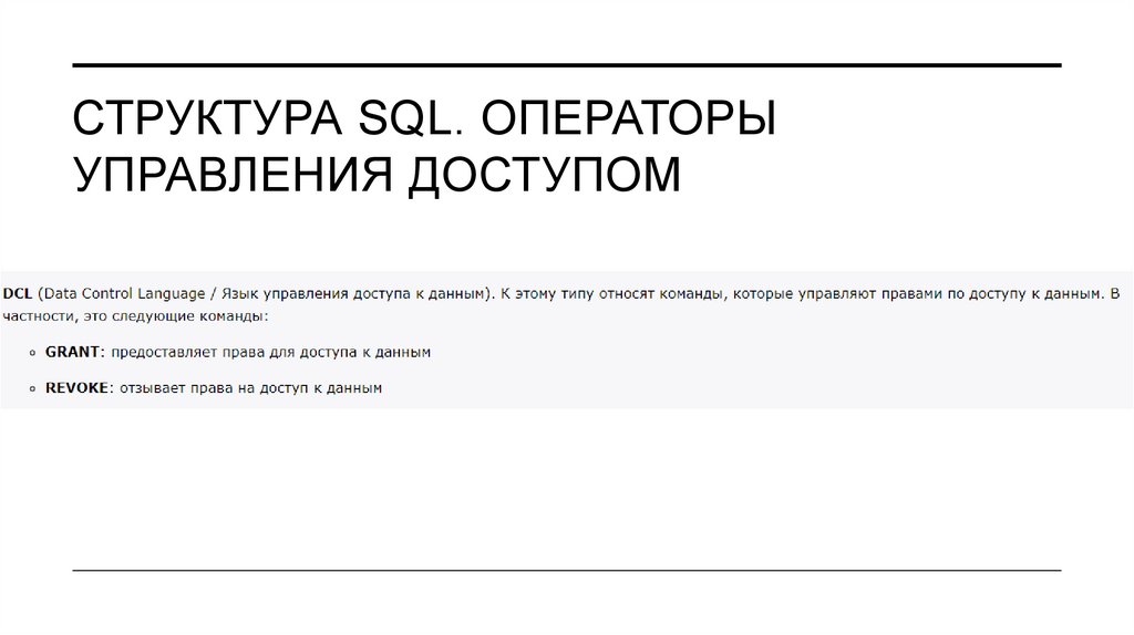 СТРУКТУРА SQL. ОПЕРАТОРЫУПРАВЛЕНИЯ ДОСТУПОМ
