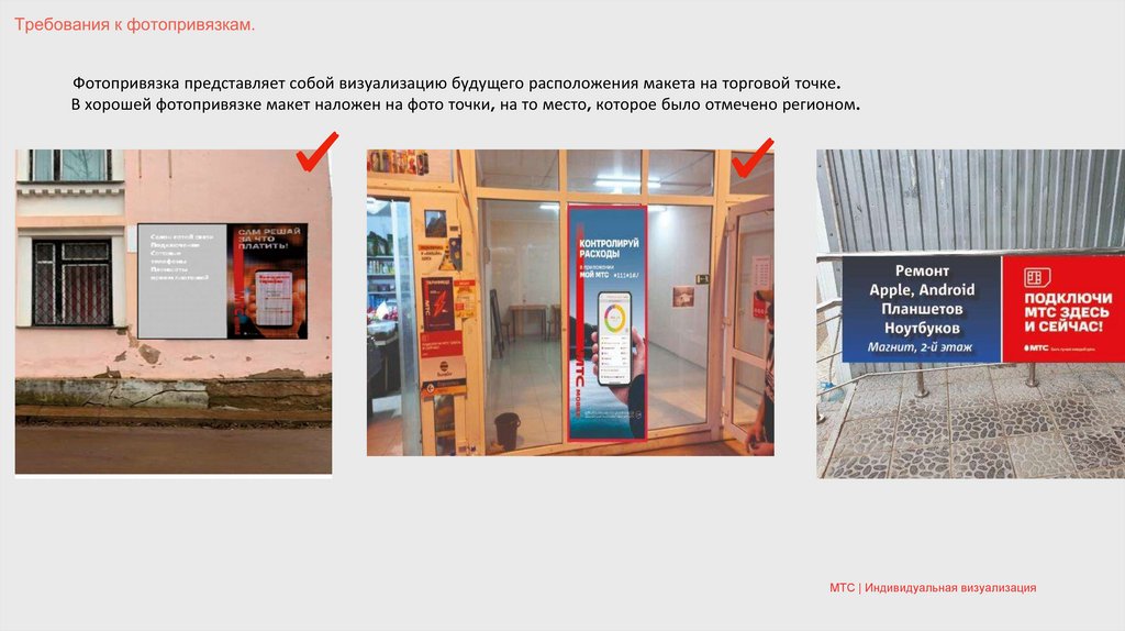 Фотопривязка представляет собой визуализацию будущего расположения макета на торговой точке.В хорошей фотопривязке макет наложен на фото точки, на то место, которое было отмечено регионом.