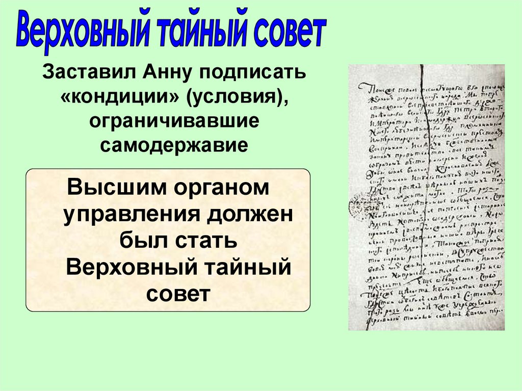 Фаворит престол, предложенные «верховниками»