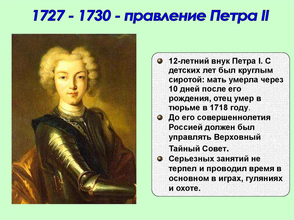 12-летний внук Петра I. Сдетских лет был круглым