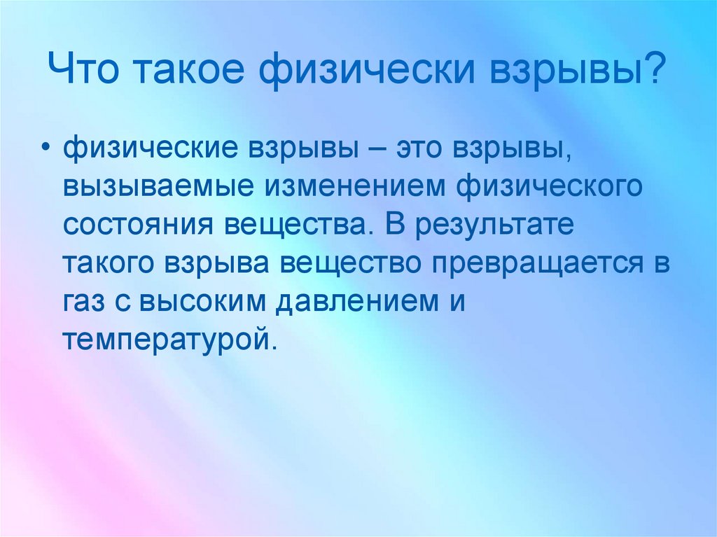 Что такое физически взрывы?• физические взрывы – это взрывы,