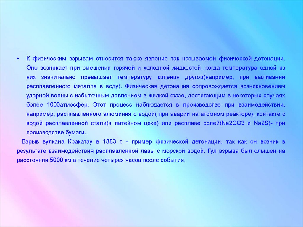расплавленного металла в воду). Физическая детонация сопровождается возникновением