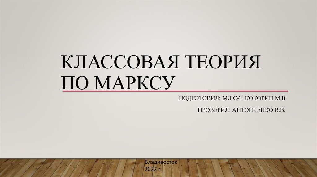 КЛАССОВАЯ ТЕОРИЯПО МАРКСУ