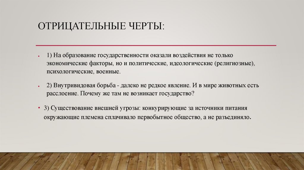 ОТРИЦАТЕЛЬНЫЕ ЧЕРТЫ:1) На образование государственности оказали воздействия не только