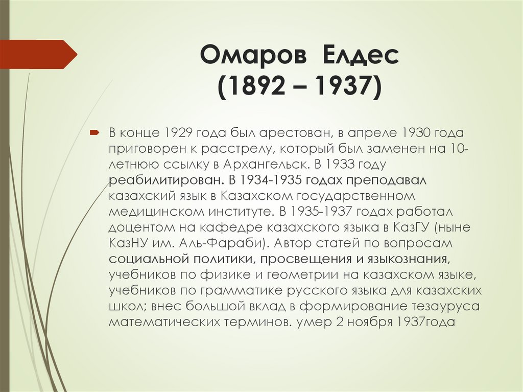 Омаров Елдес(1892 – 1937)