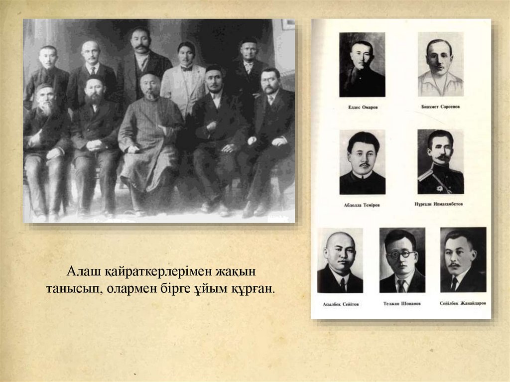 Алаш қайраткерлерімен жақынтанысып, олармен бірге ұйым құрған.