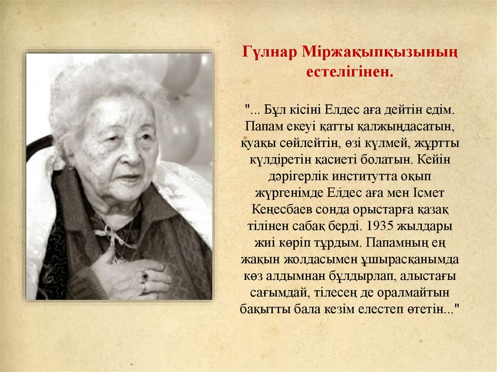 Гүлнар Міржақыпқызыныңестелігінен.