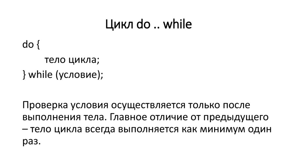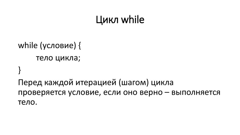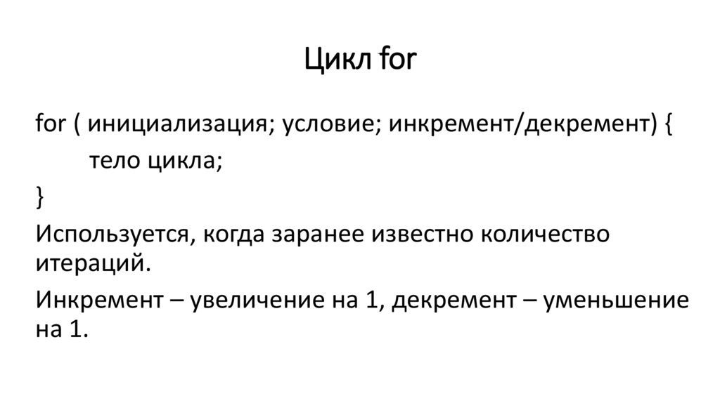 Цикл forfor ( инициализация; условие; инкремент/декремент) {