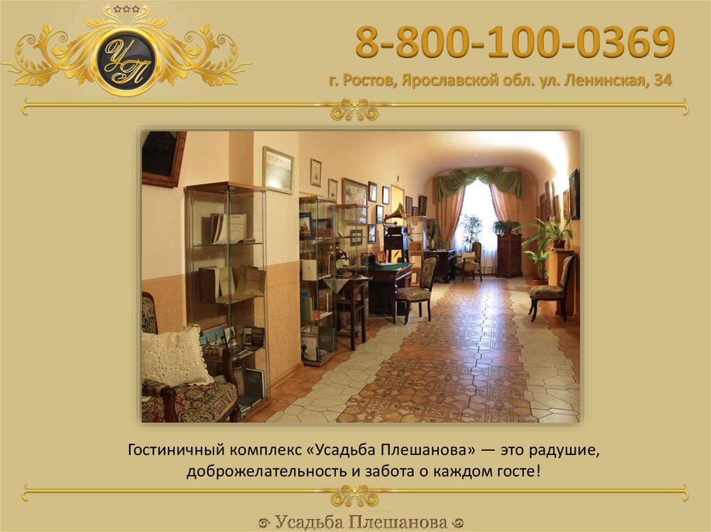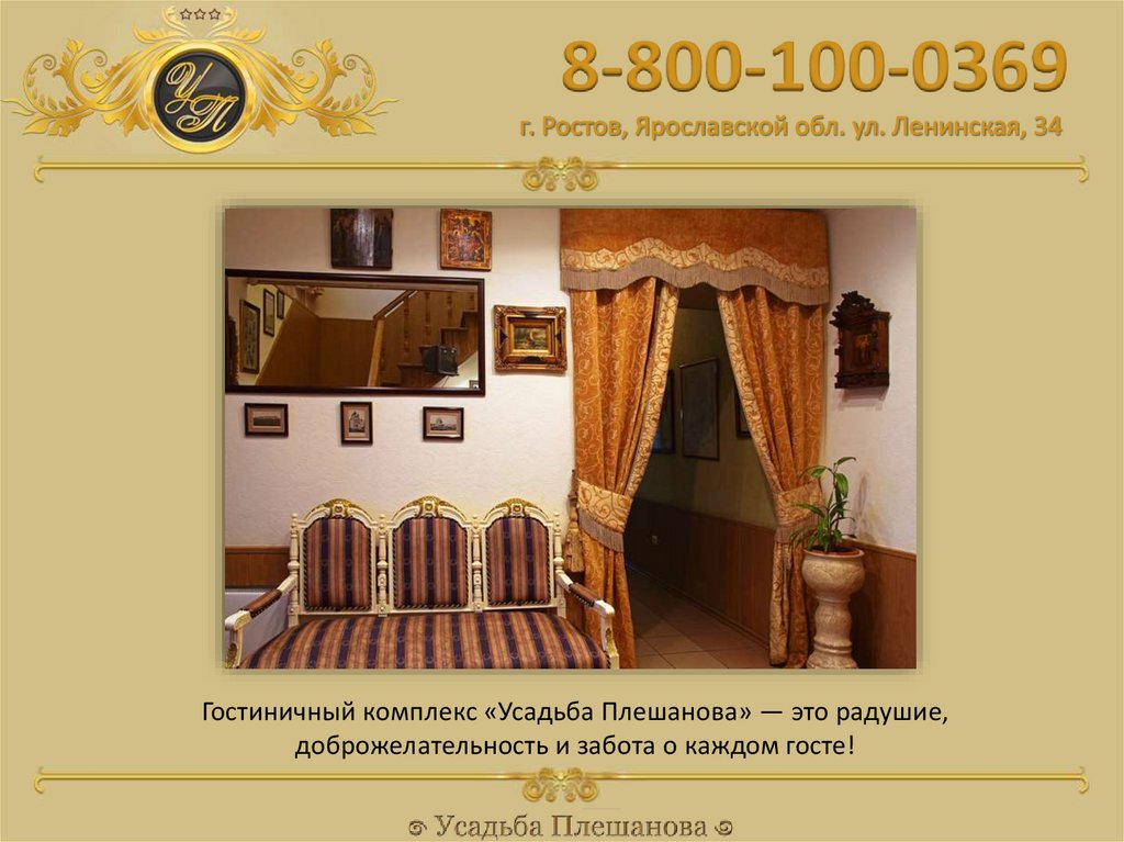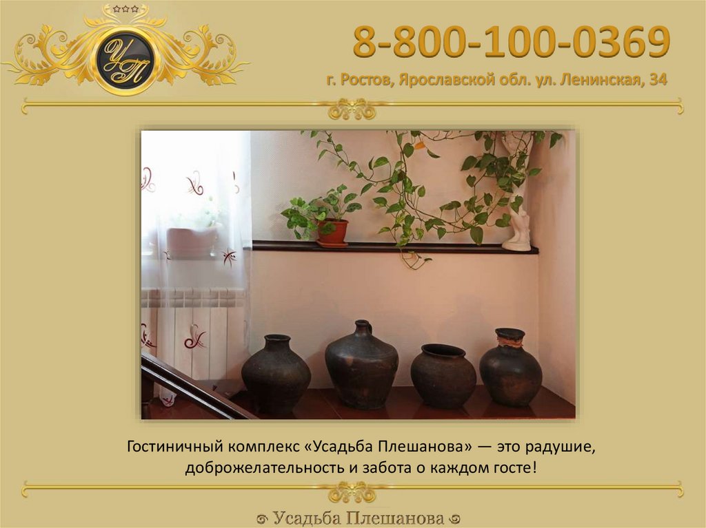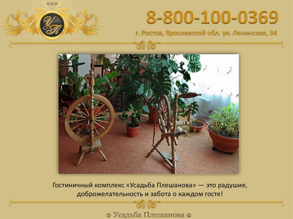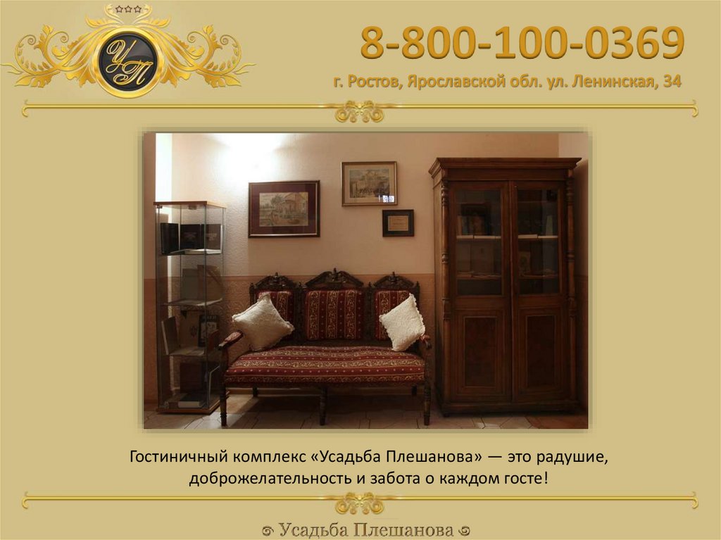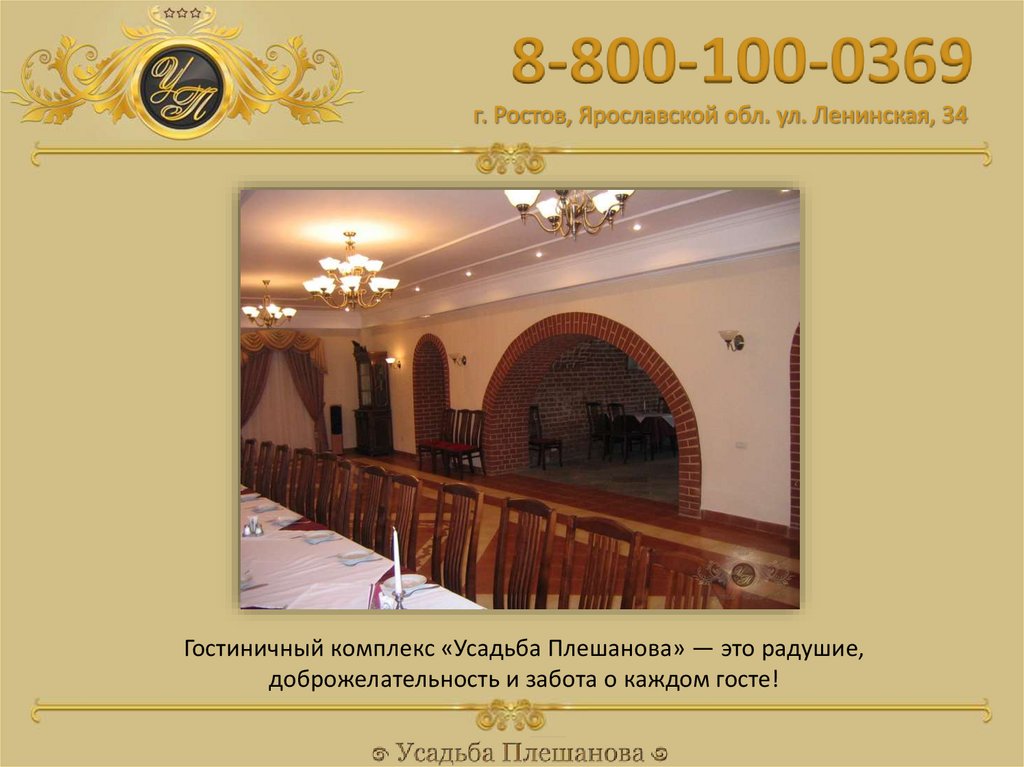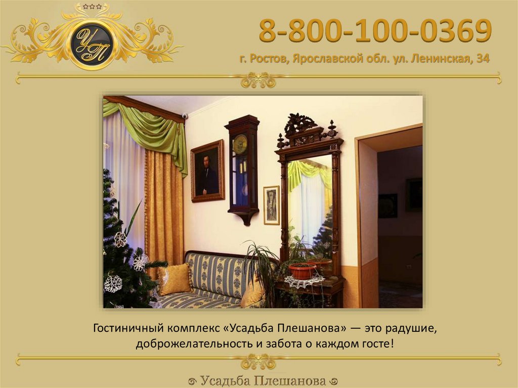 8-800-100-0369Гостиничный комплекс «Усадьба Плешанова» — это радушие,