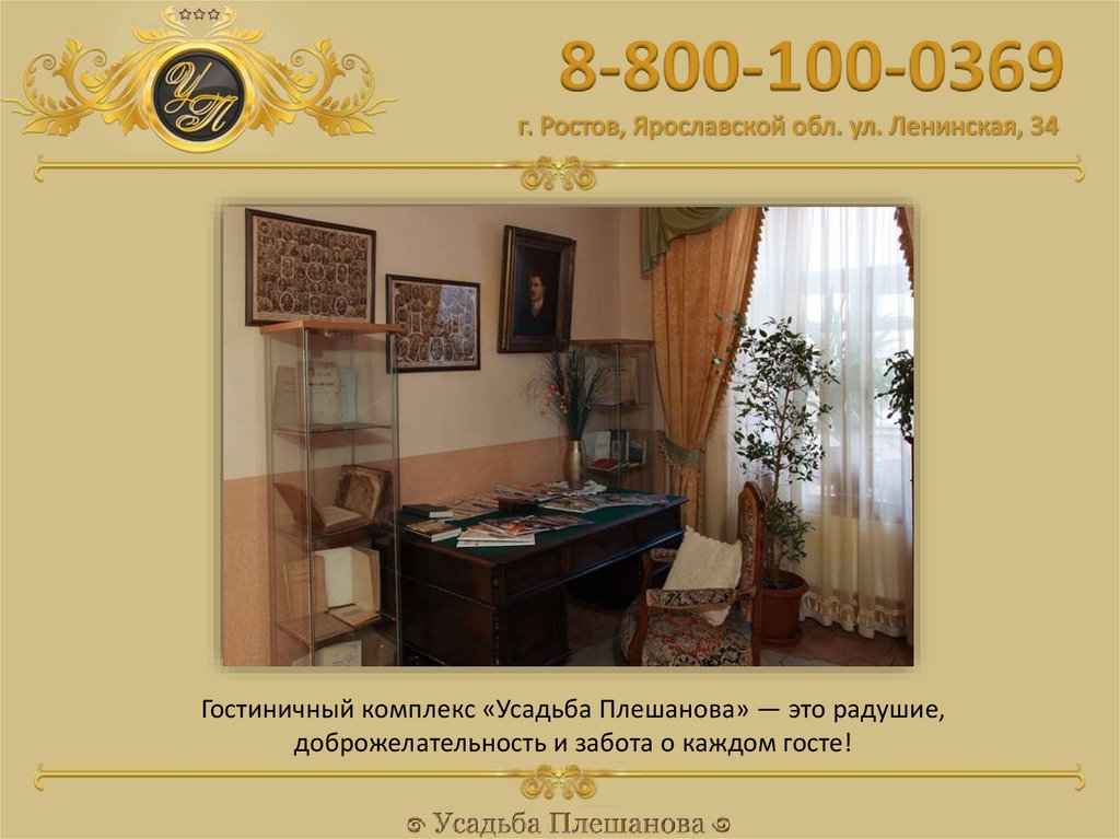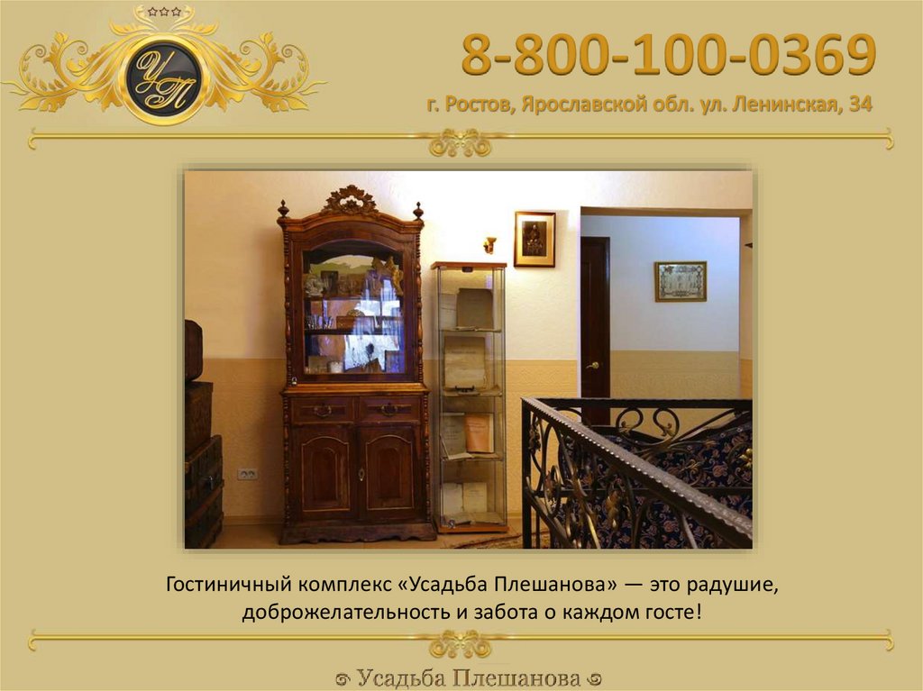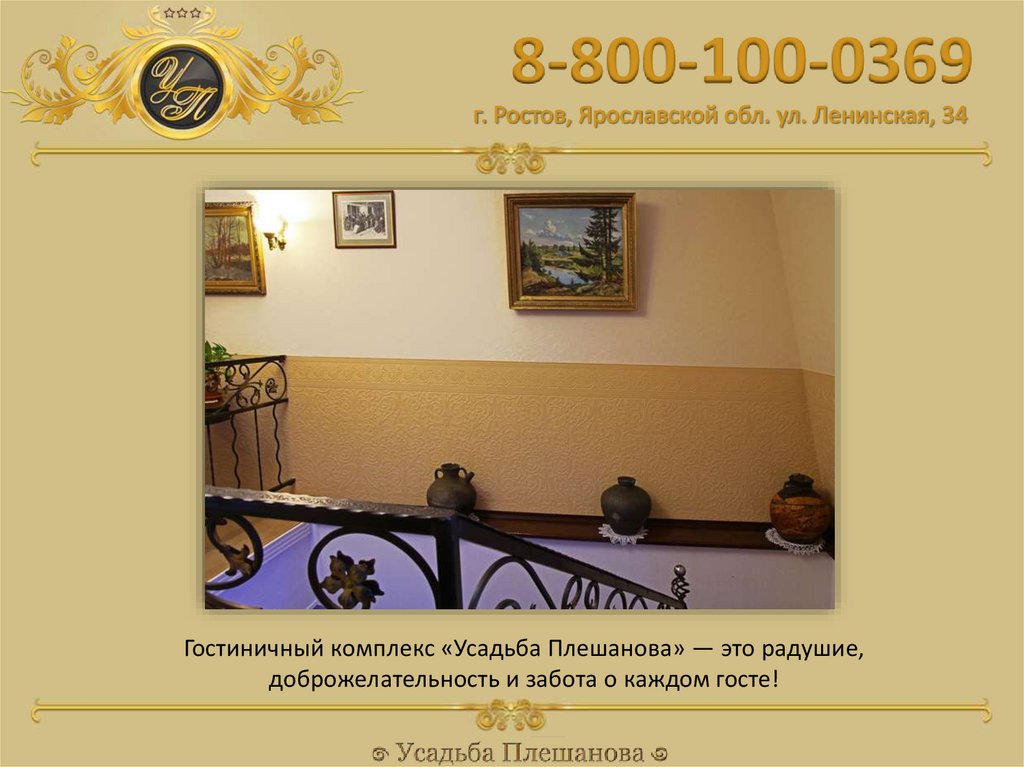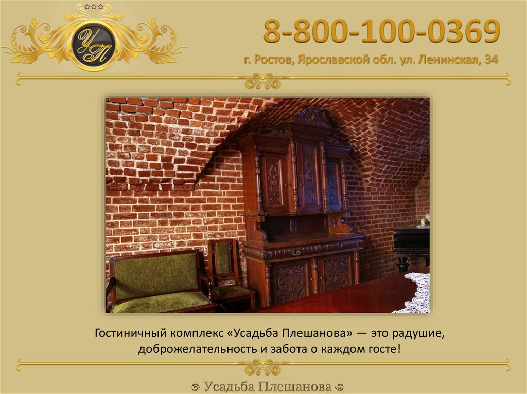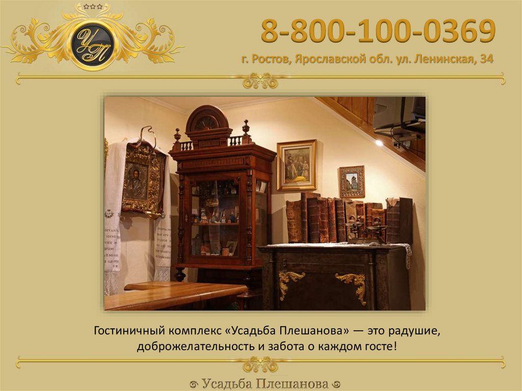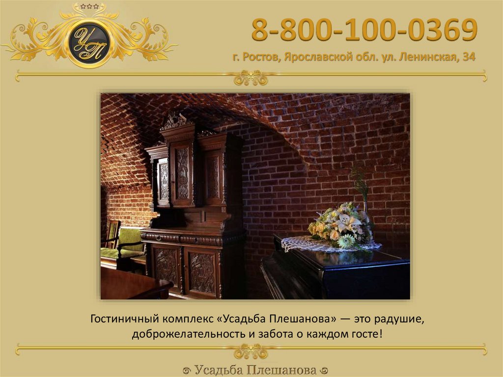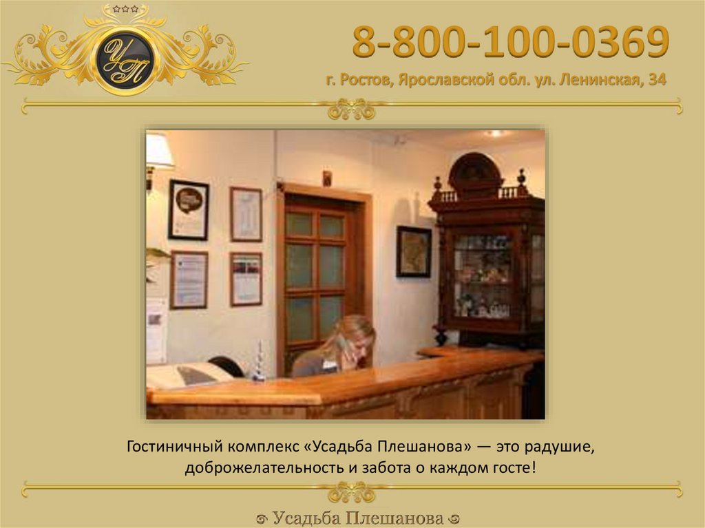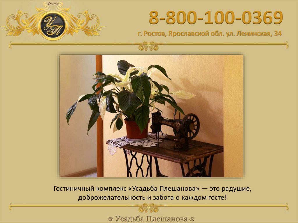 8-800-100-0369Гостиничный комплекс «Усадьба Плешанова» — это радушие,