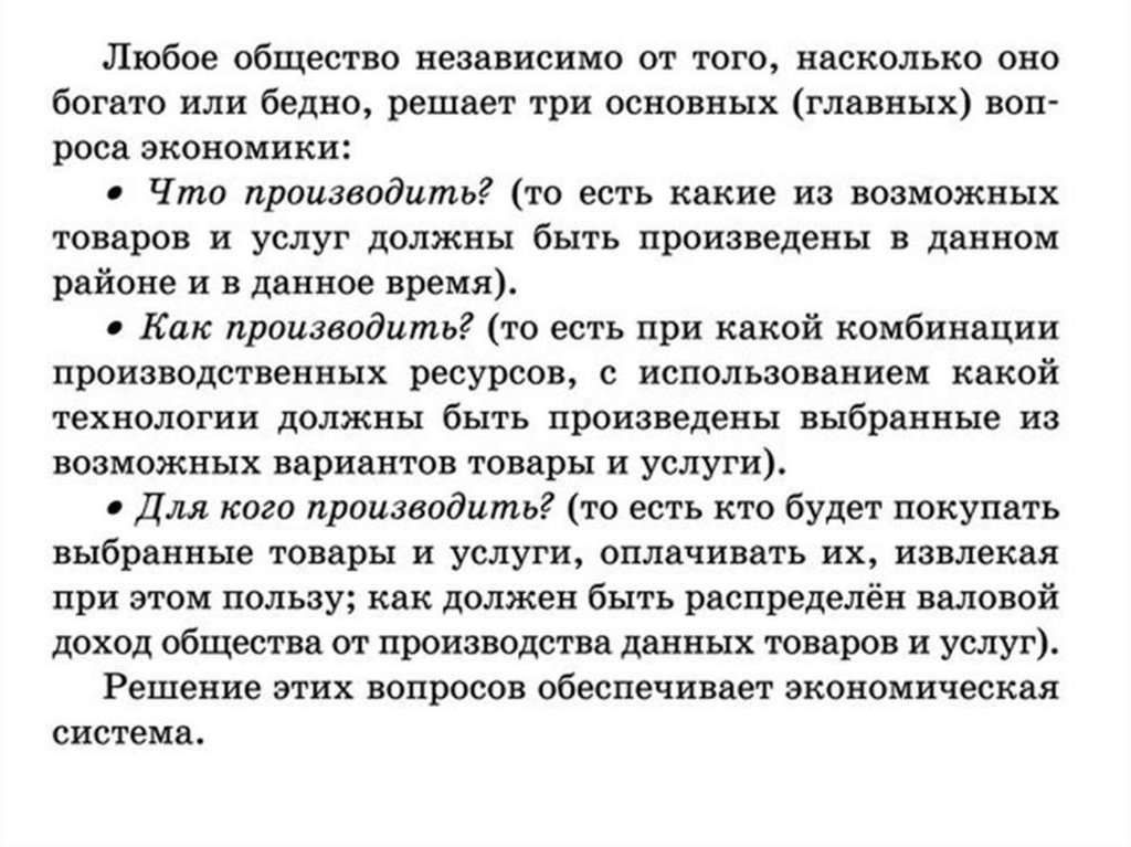 Основные вопросы экономикии экономические системы