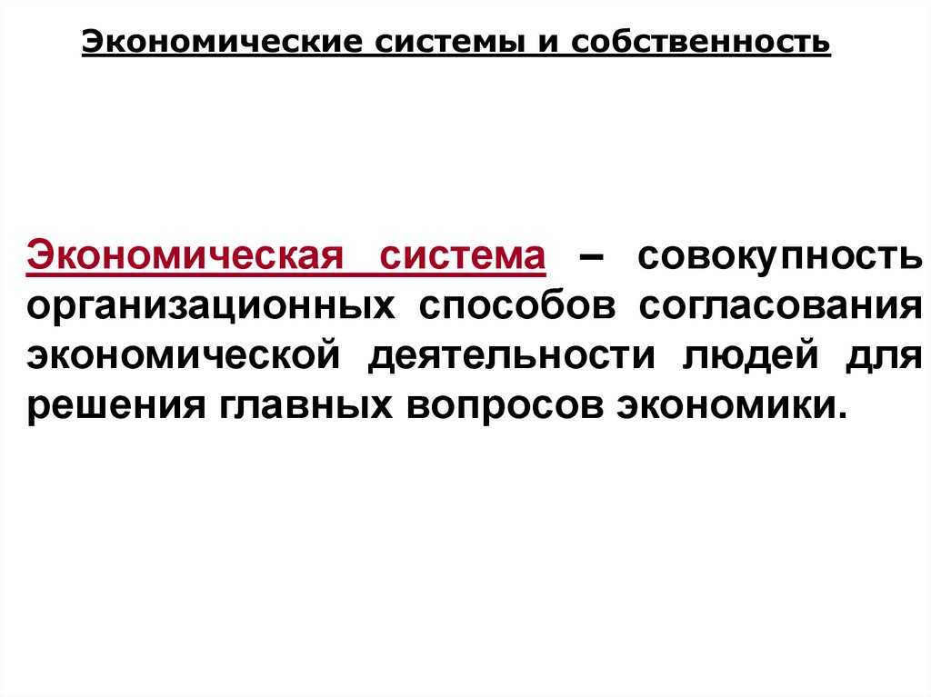 Экономические системы и собственностьЭкономическая система – совокупность