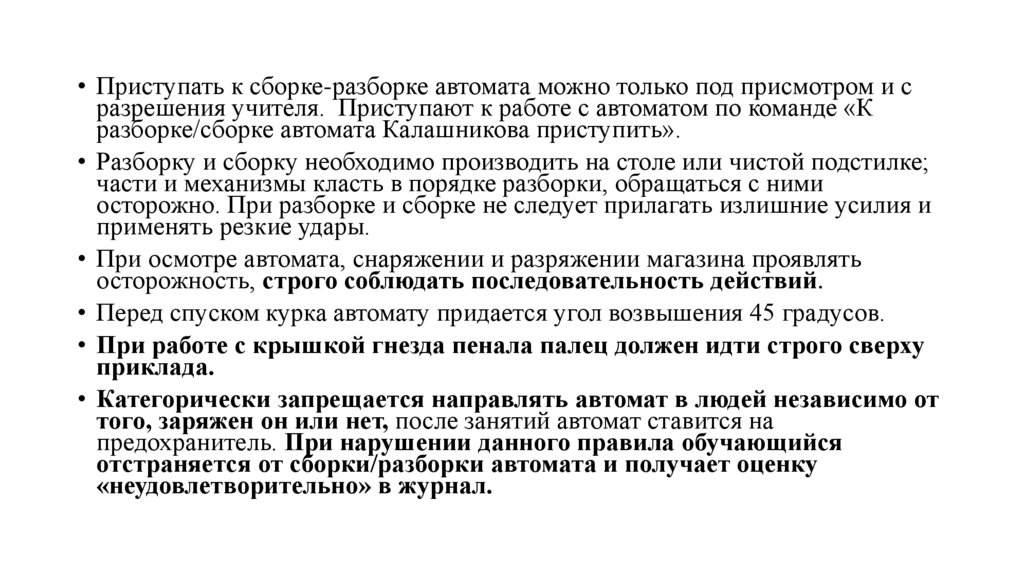 • Приступать к сборке-разборке автомата можно только под присмотром и сразрешения учителя. Приступают к работе с автоматом по команде «К
