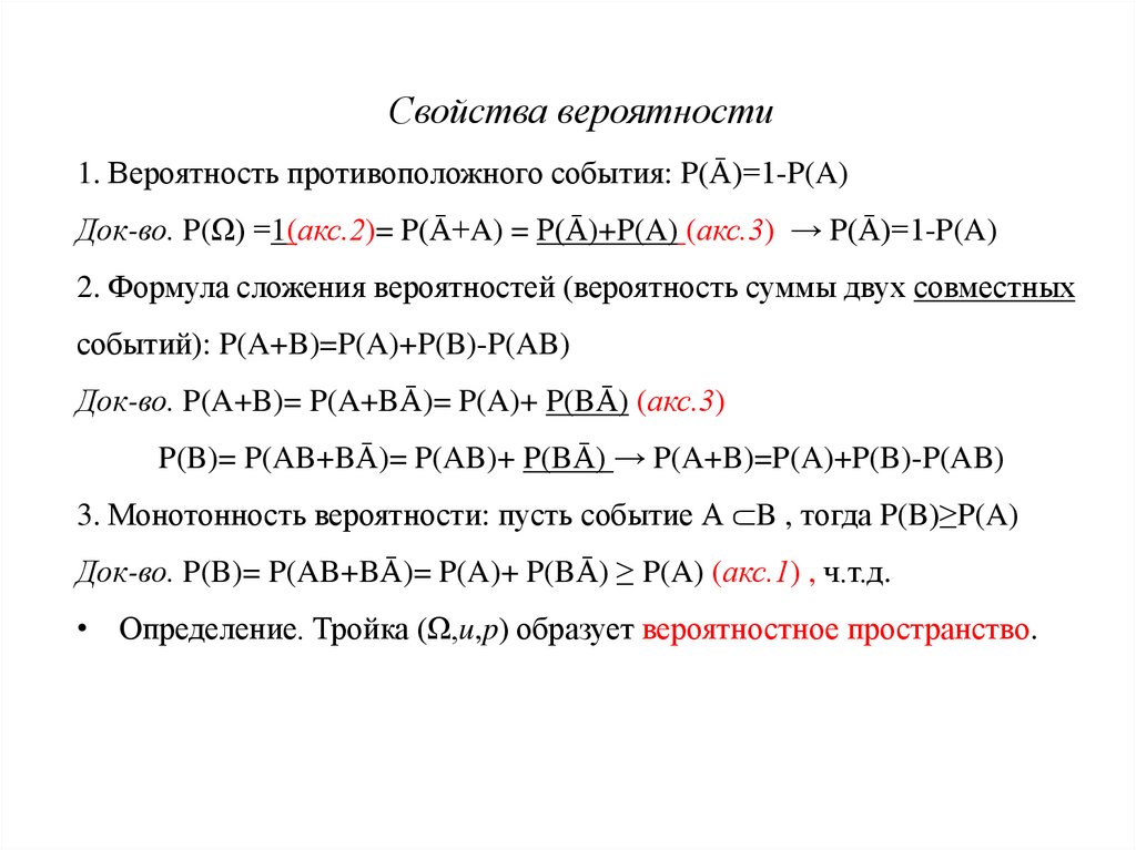 Док-во. P(B)= P(AB+BĀ)= P(A)+ P(BĀ) ≥ P(A) (акс.1) , ч.т.д.