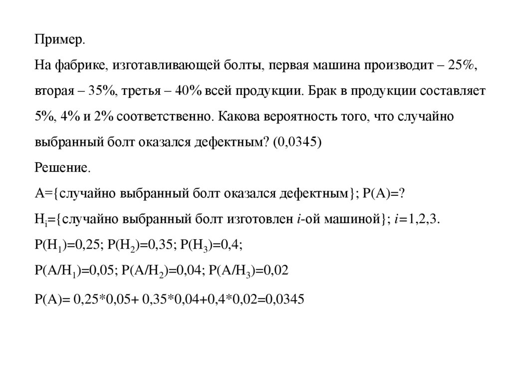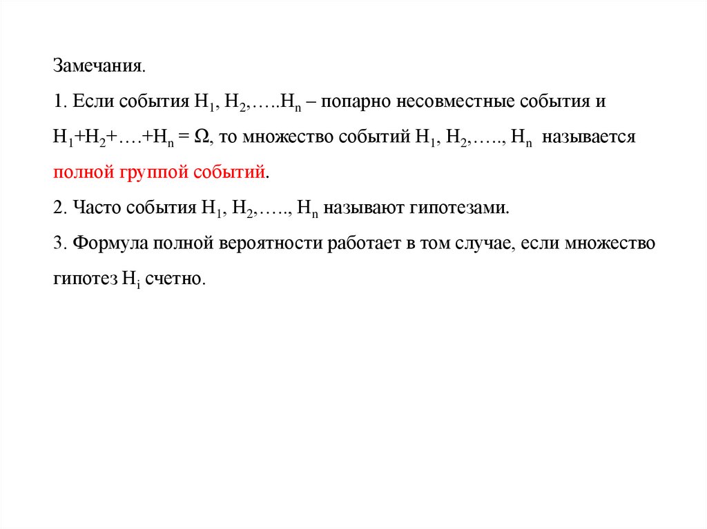 3)P(Σ Aк) = Σ P(Aк) - для несовместных событий A1, A2,…An (Ai Aj= Ø)