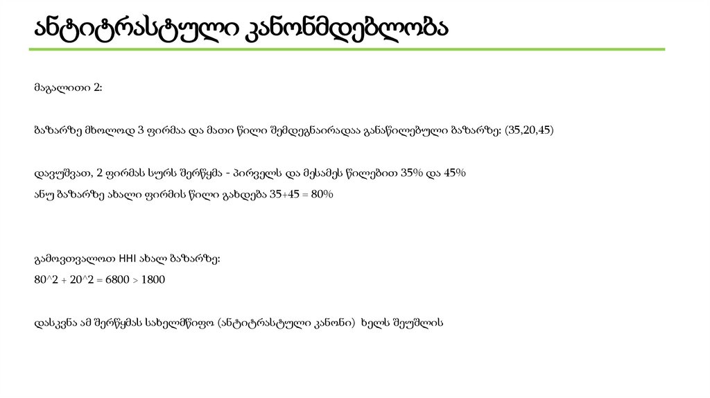 ანტიტრასტული კანონმდებლობამაგალითი 2: