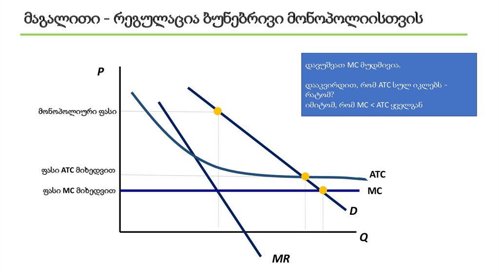 მაგალითი - რეგულაცია ბუნებრივი მონოპოლიისთვისდავუშვათ MC მუდმივია.