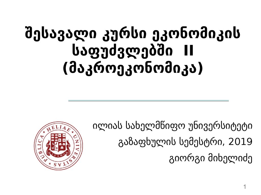 შესავალი კურსი ეკონომიკის საფუძვლებში II (მაკროეკონომიკა)