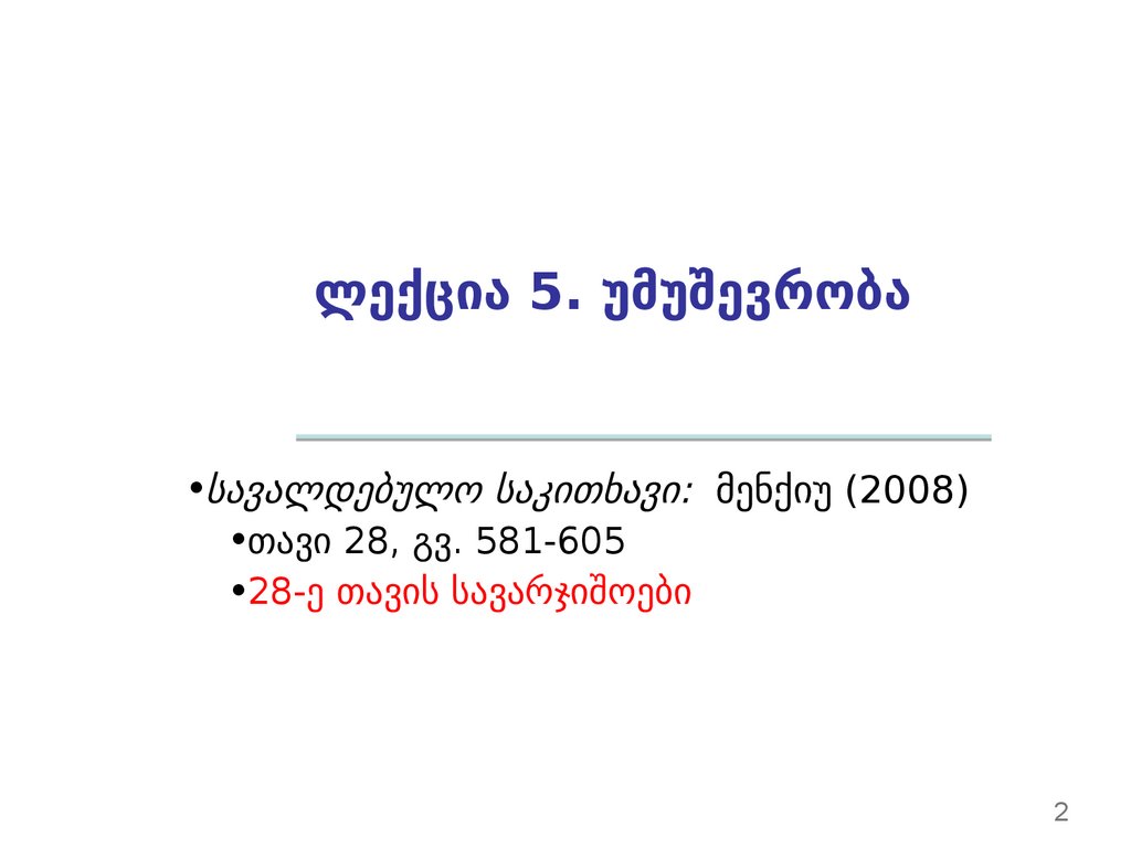ლექცია 5. უმუშევრობა•სავალდებულო საკითხავი: მენქიუ (2008)