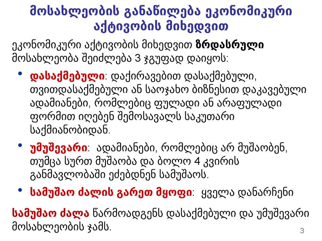 მოსახლეობის განაწილება ეკონომიკურიაქტივობის მიხედვით