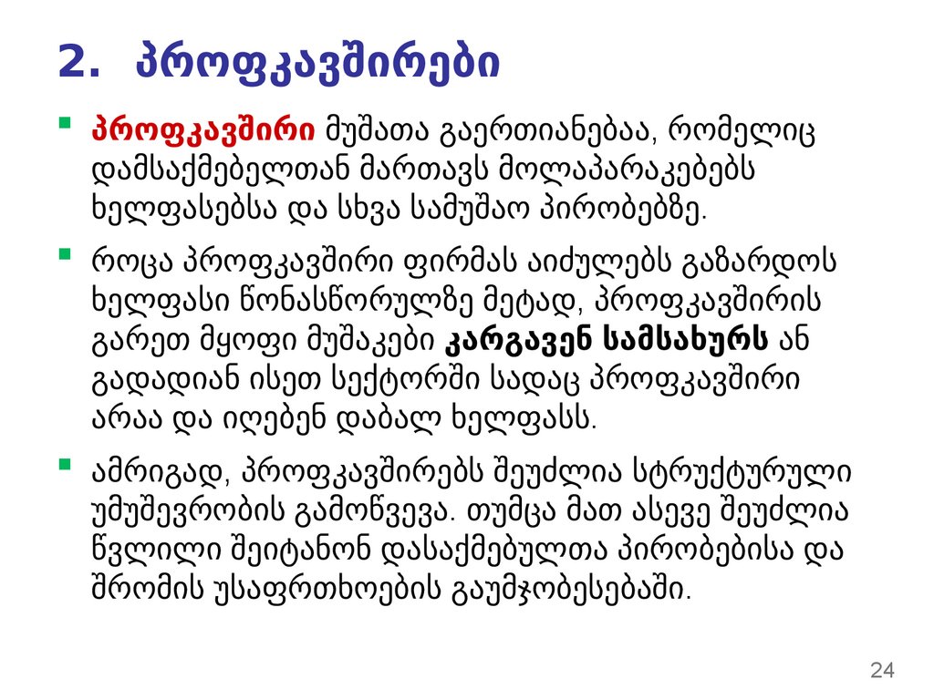 2. პროფკავშირებიპროფკავშირი მუშათა გაერთიანებაა, რომელიც