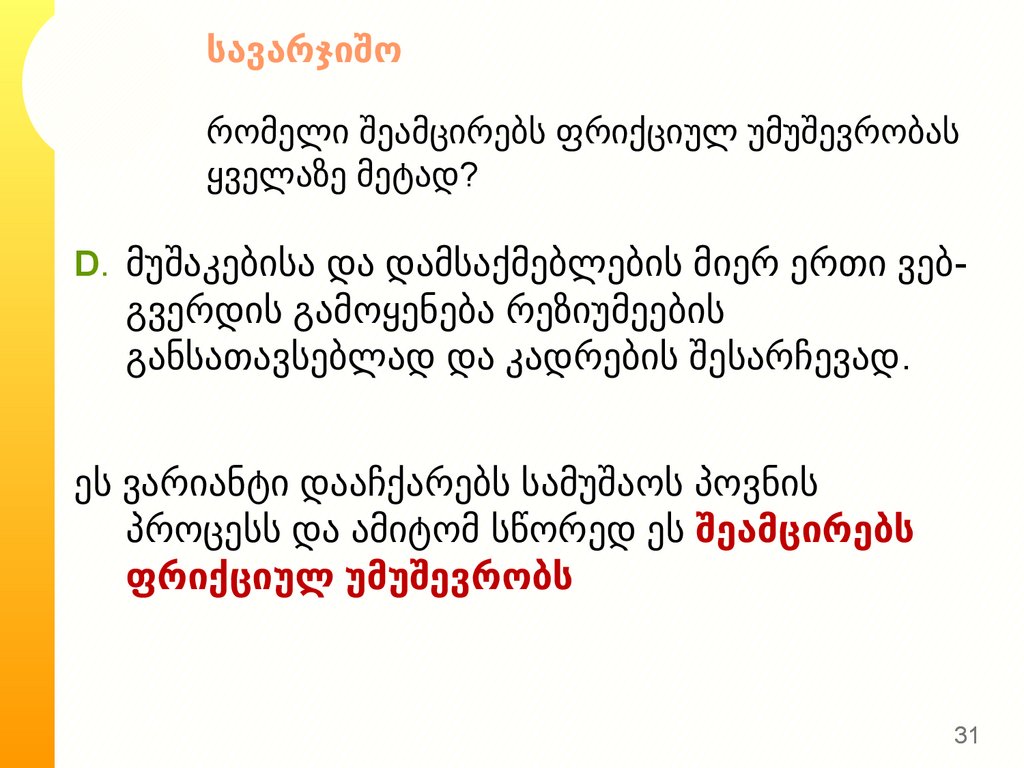 ეს ვარიანტი დააჩქარებს სამუშაოს პოვნის