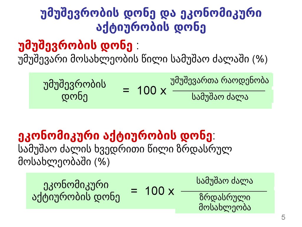 უმუშევრობის დონე = 100 x (უმუშევარი)/(სამუშაო ძალა)