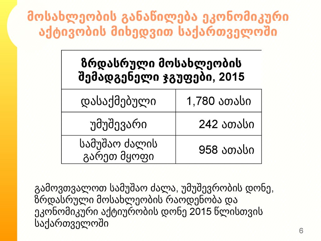 ეკონომიკური აქტიურობის დონე 2015 წლისთვის