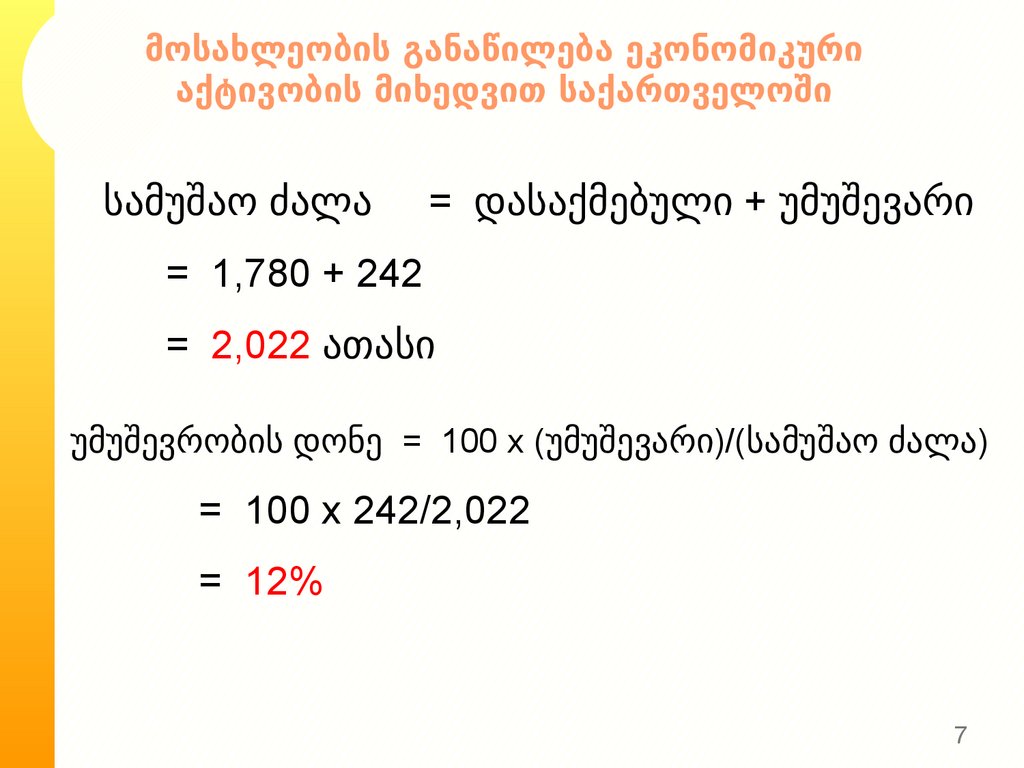 გამოვთვალოთ სამუშაო ძალა, უმუშევრობის დონე,