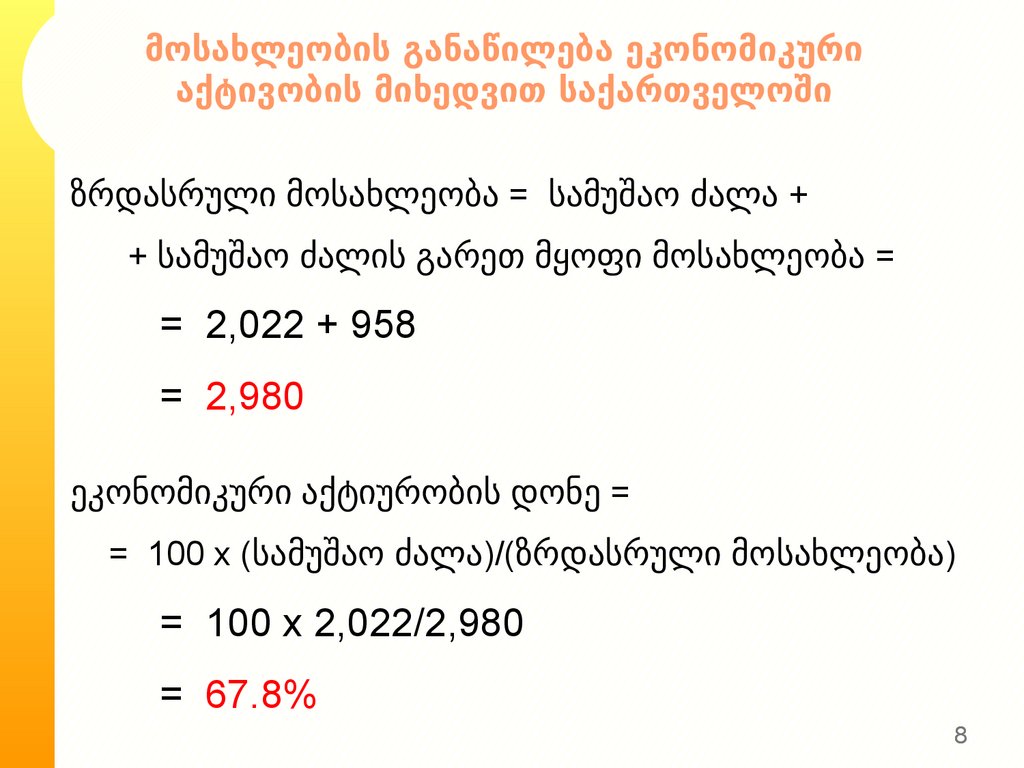 = 100 x (სამუშაო ძალა)/(ზრდასრული მოსახლეობა)