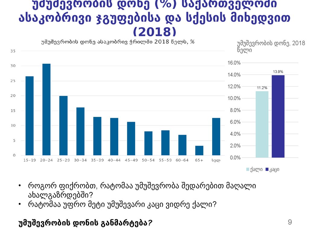 უმუშევრობის დონე (%) საქართველოშიასაკობრივი ჯგუფებისა და სქესის მიხედვით