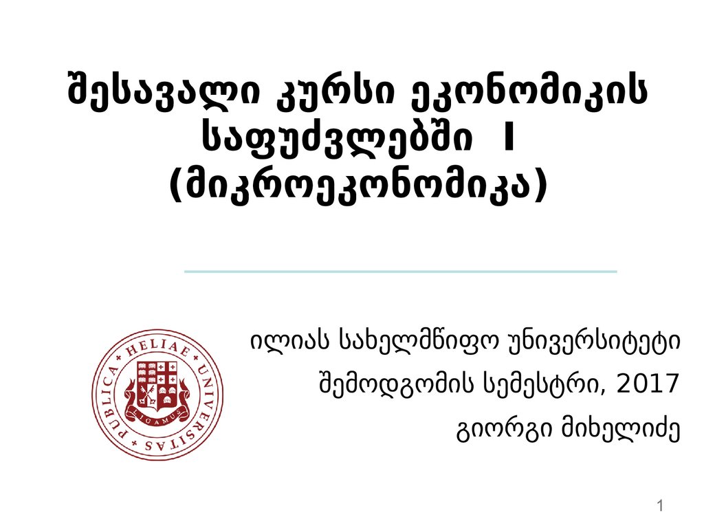 შესავალი კურსი ეკონომიკისსაფუძვლებში I