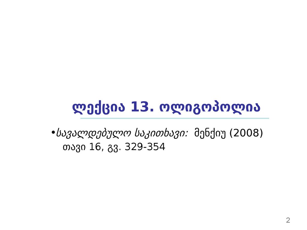 ლექცია 13. ოლიგოპოლია•სავალდებულო საკითხავი: მენქიუ (2008)