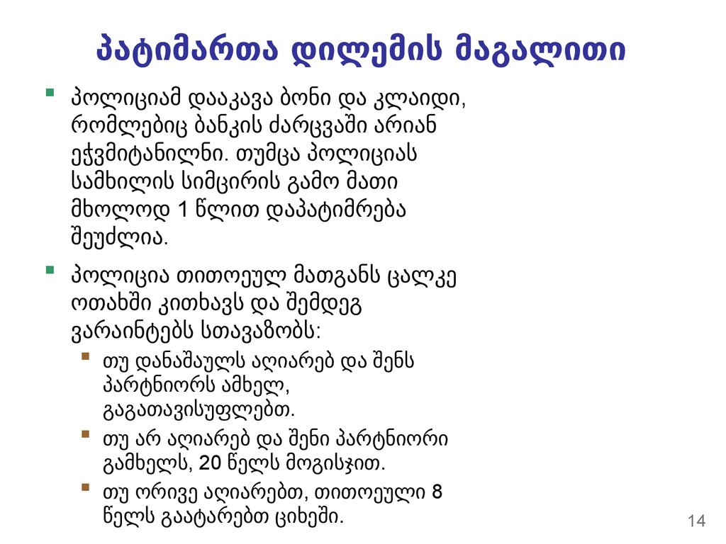 ქმედებებს საკუთარი გადაწყვეტილებების მიღებისას.