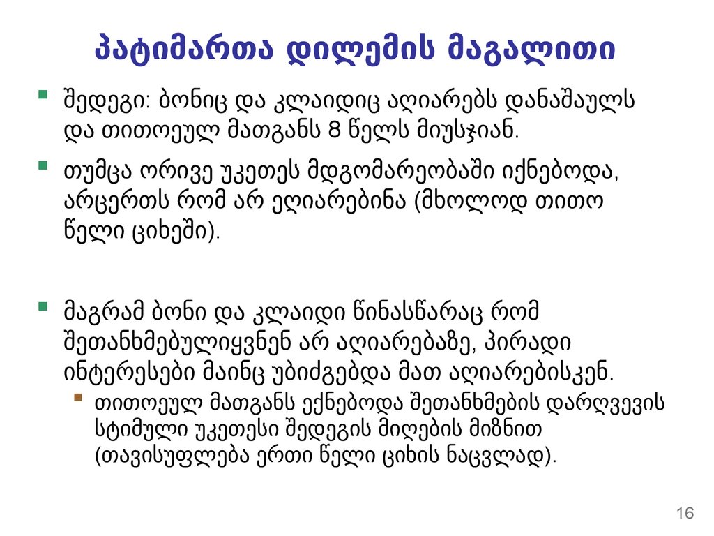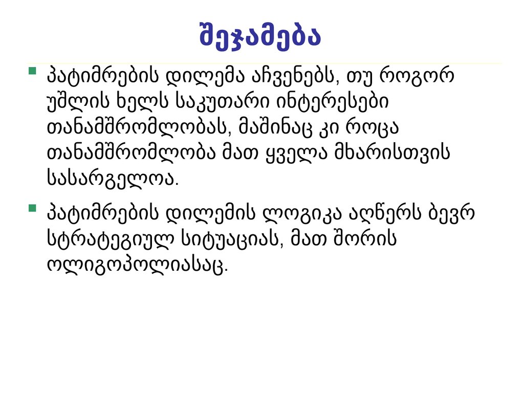 შეჯამებაპატიმრების დილემა აჩვენებს, თუ როგორ