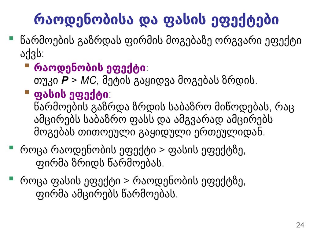 რაოდენობისა და ფასის ეფექტებიწარმოების გაზრდას ფირმის მოგებაზე ორგვარი ეფექტი