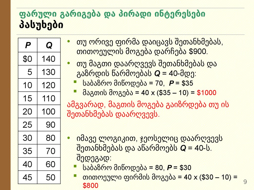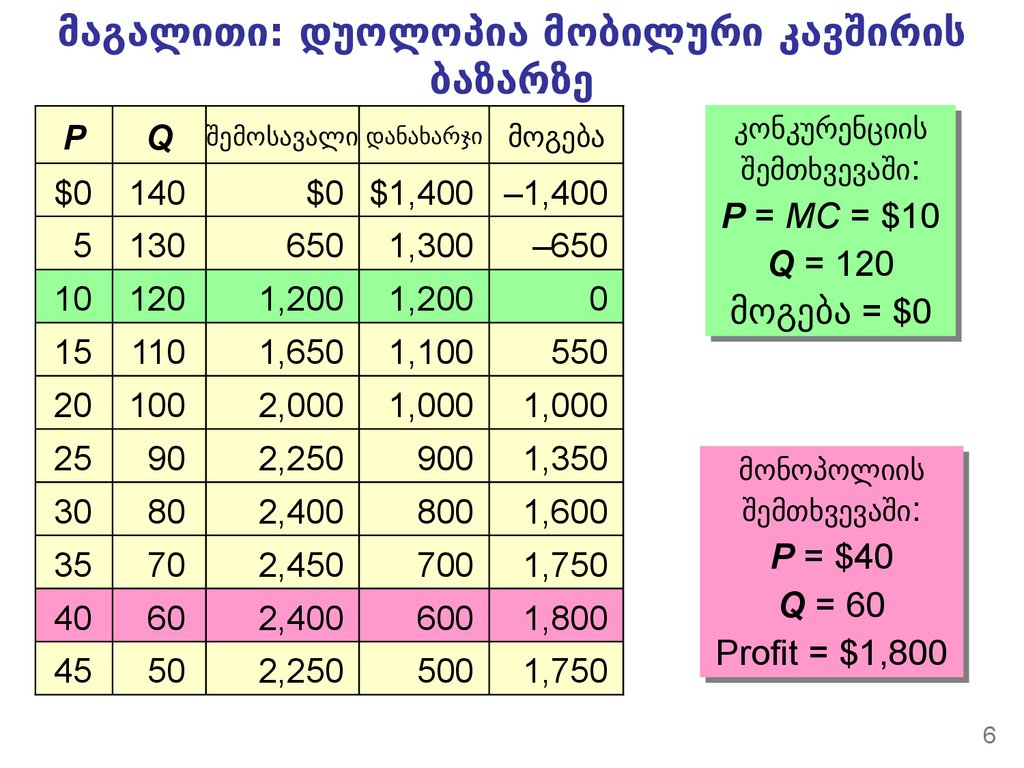 (ფიქსირებული)FC = $0, (ზღვრული)MC = $10
