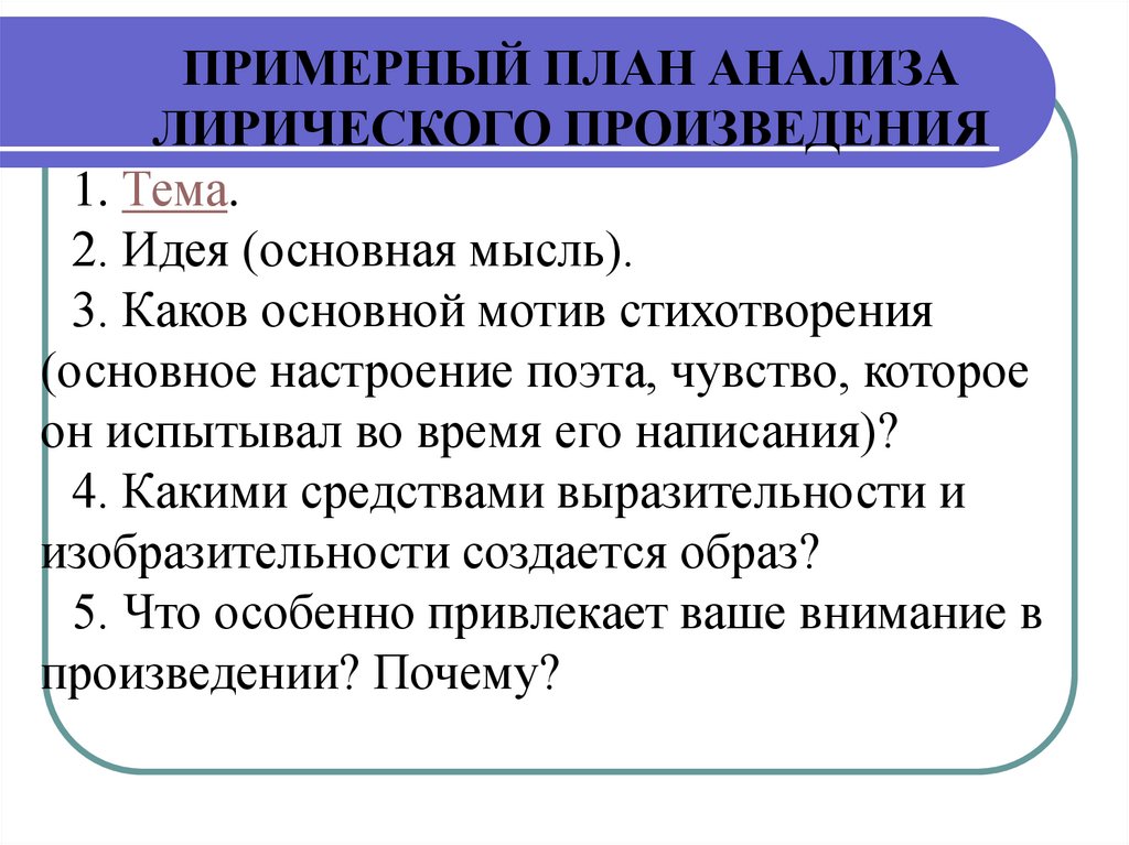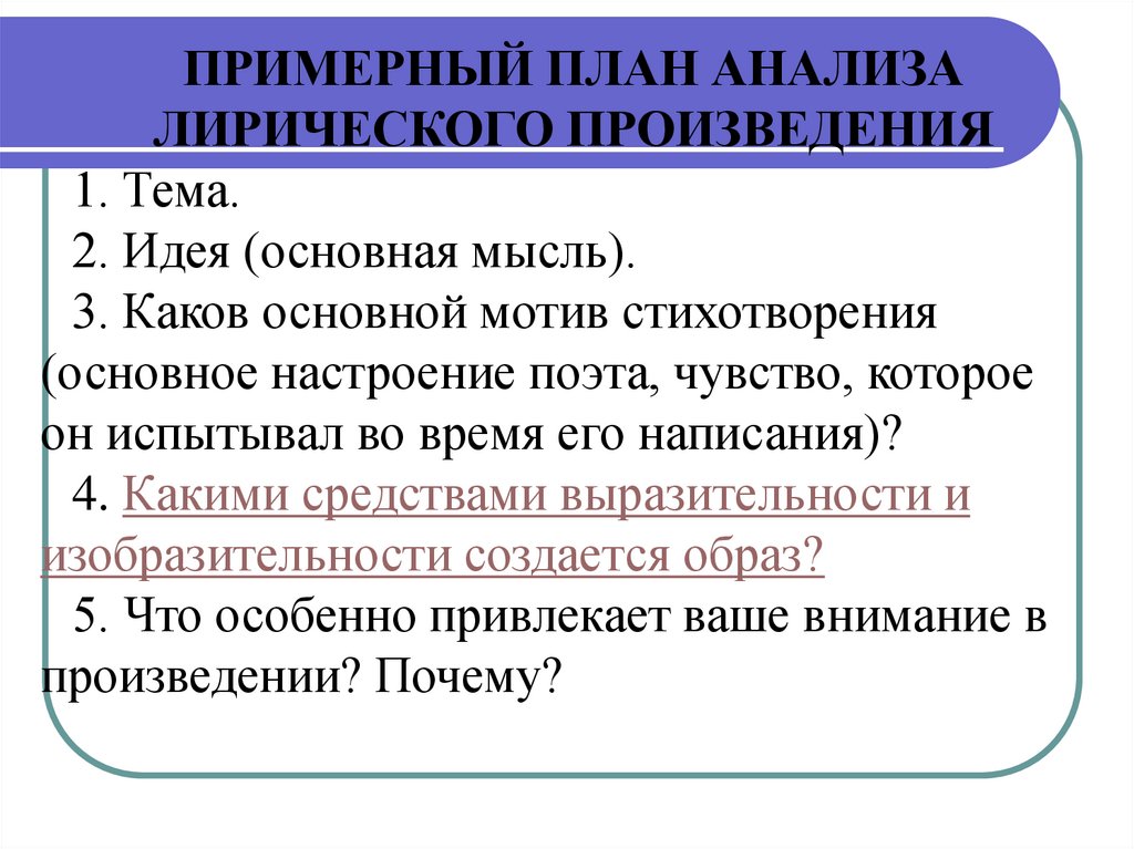 ПРИМЕРНЫЙ ПЛАН АНАЛИЗАЛИРИЧЕСКОГО ПРОИЗВЕДЕНИЯ