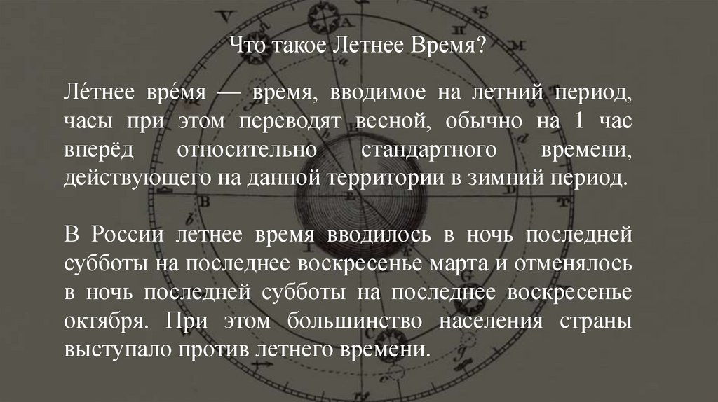 Что такое Летнее Время?Ле́тнее вре́мя — время, вводимое на летний период,