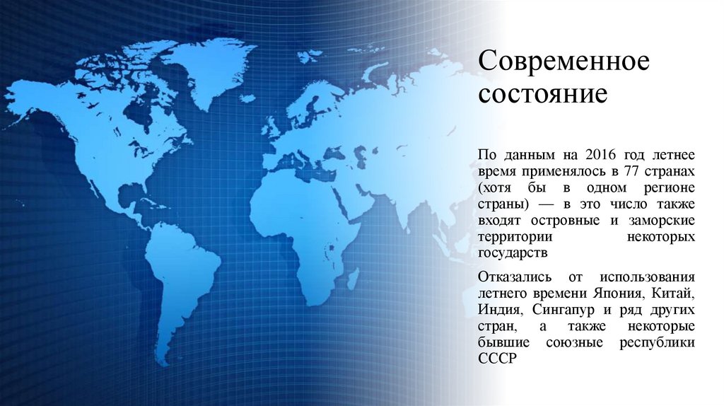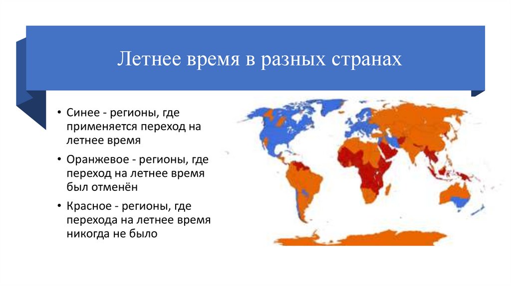 Летнее время в разных странах• Синее - регионы, где