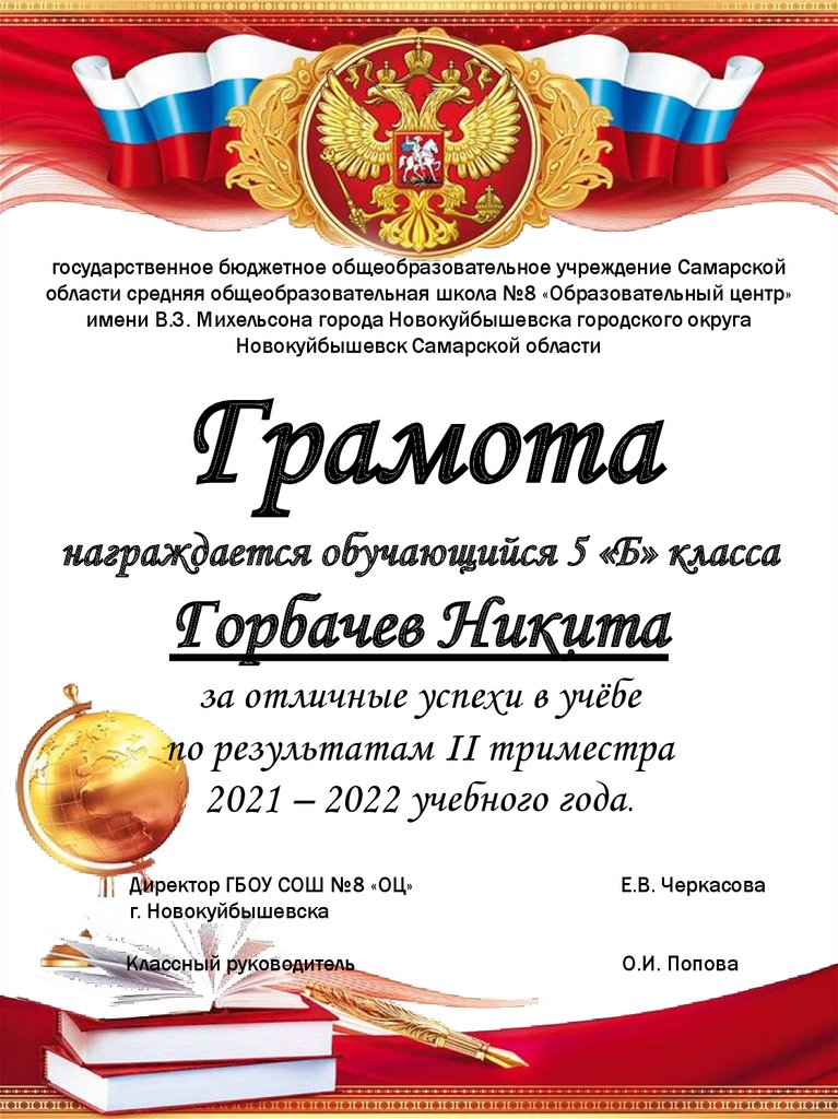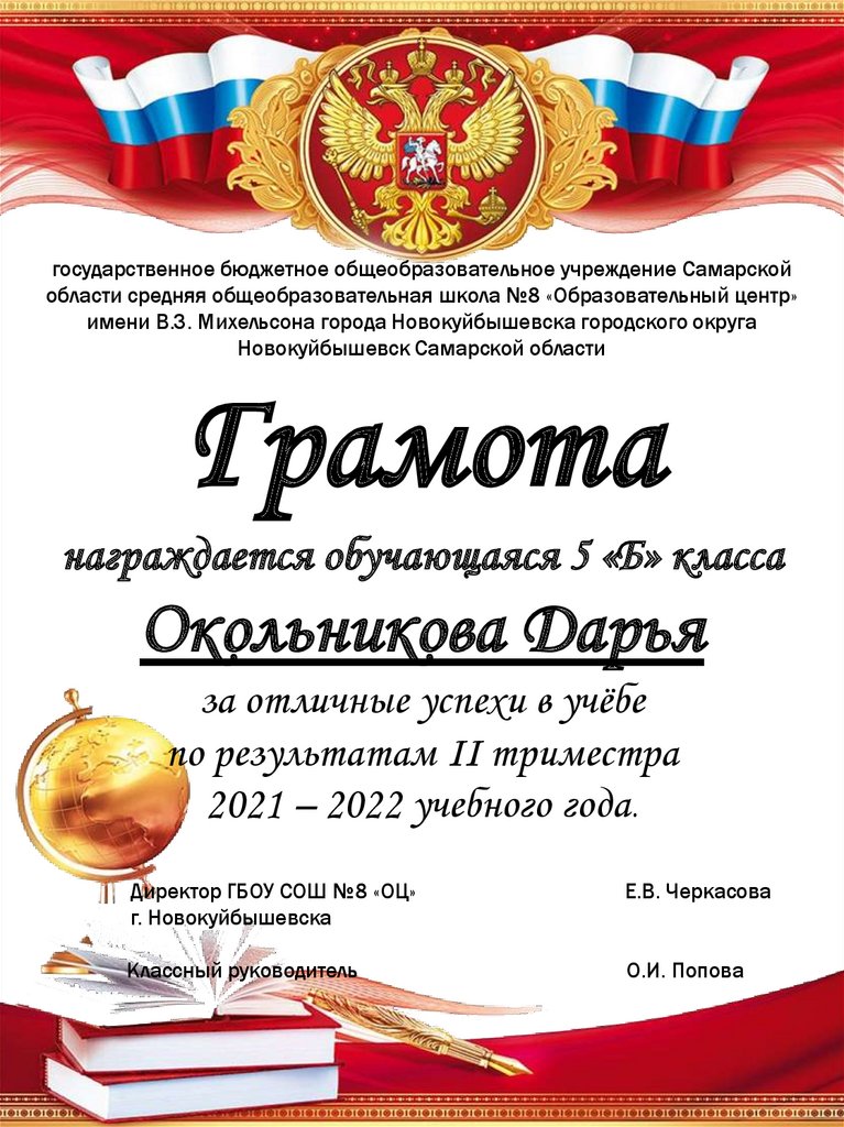 Поздравление отличников по результатам II триместра 2021 - 2022 учебного года
