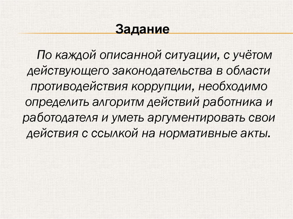 ЗаданиеПо каждой описанной ситуации, с учётом
