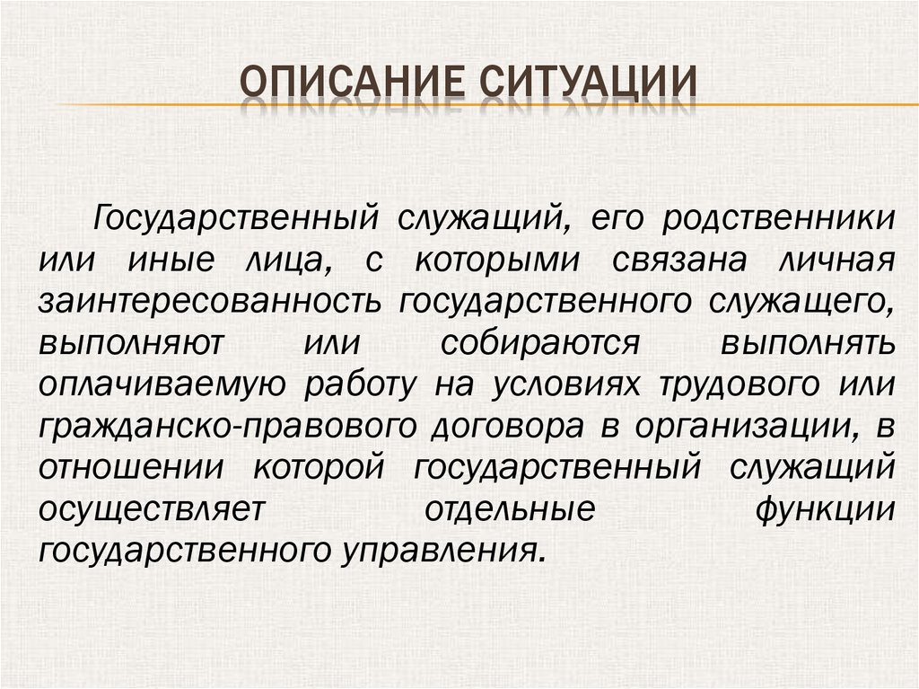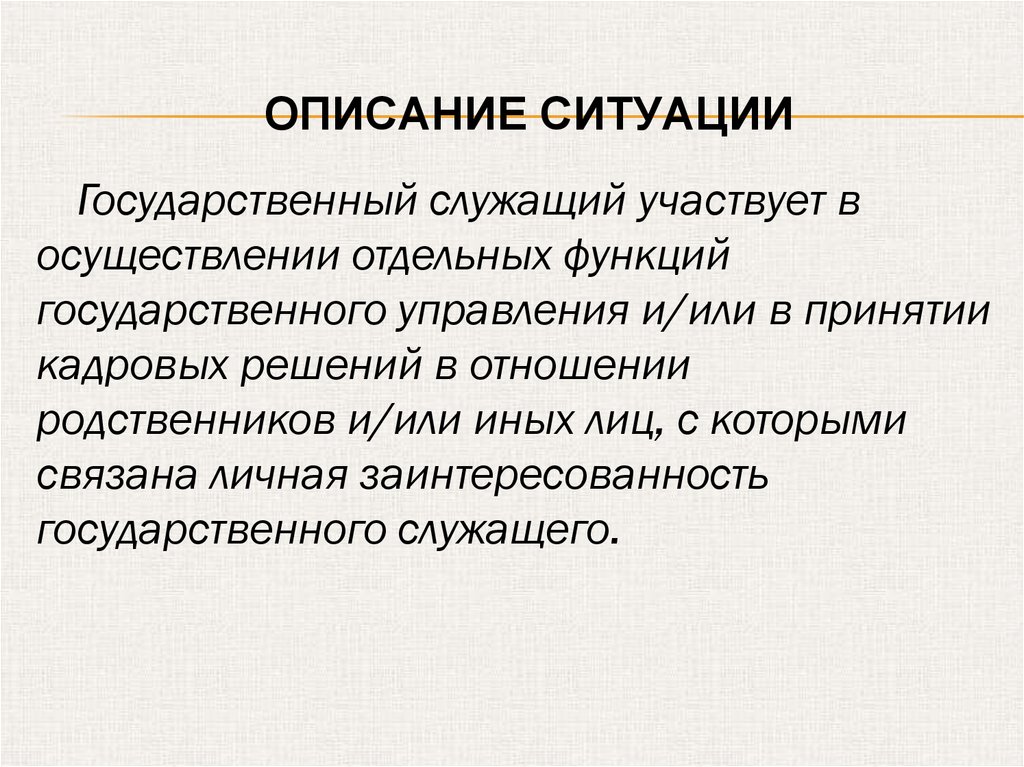 ОПИСАНИЕ СИТУАЦИИГосударственный служащий участвует в
